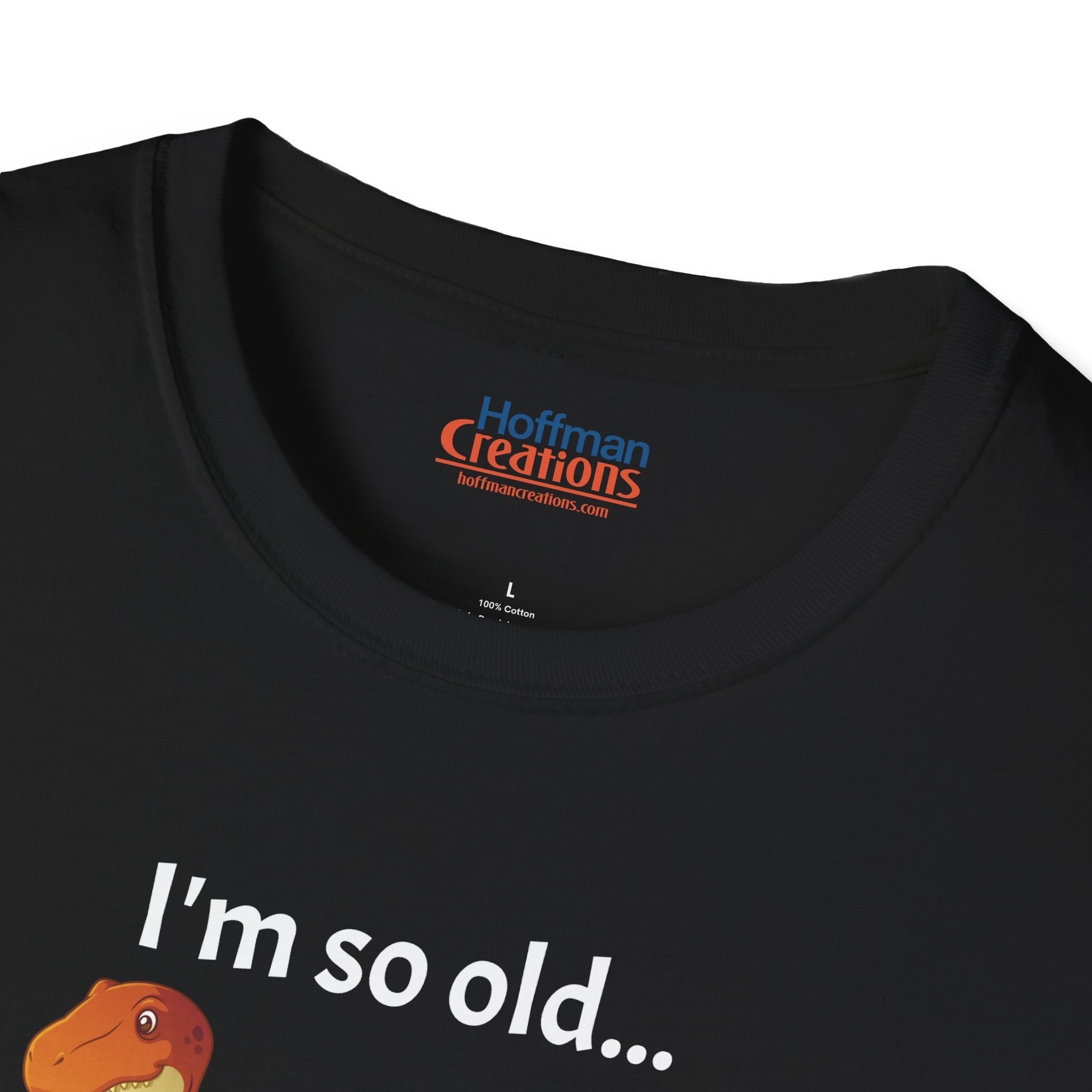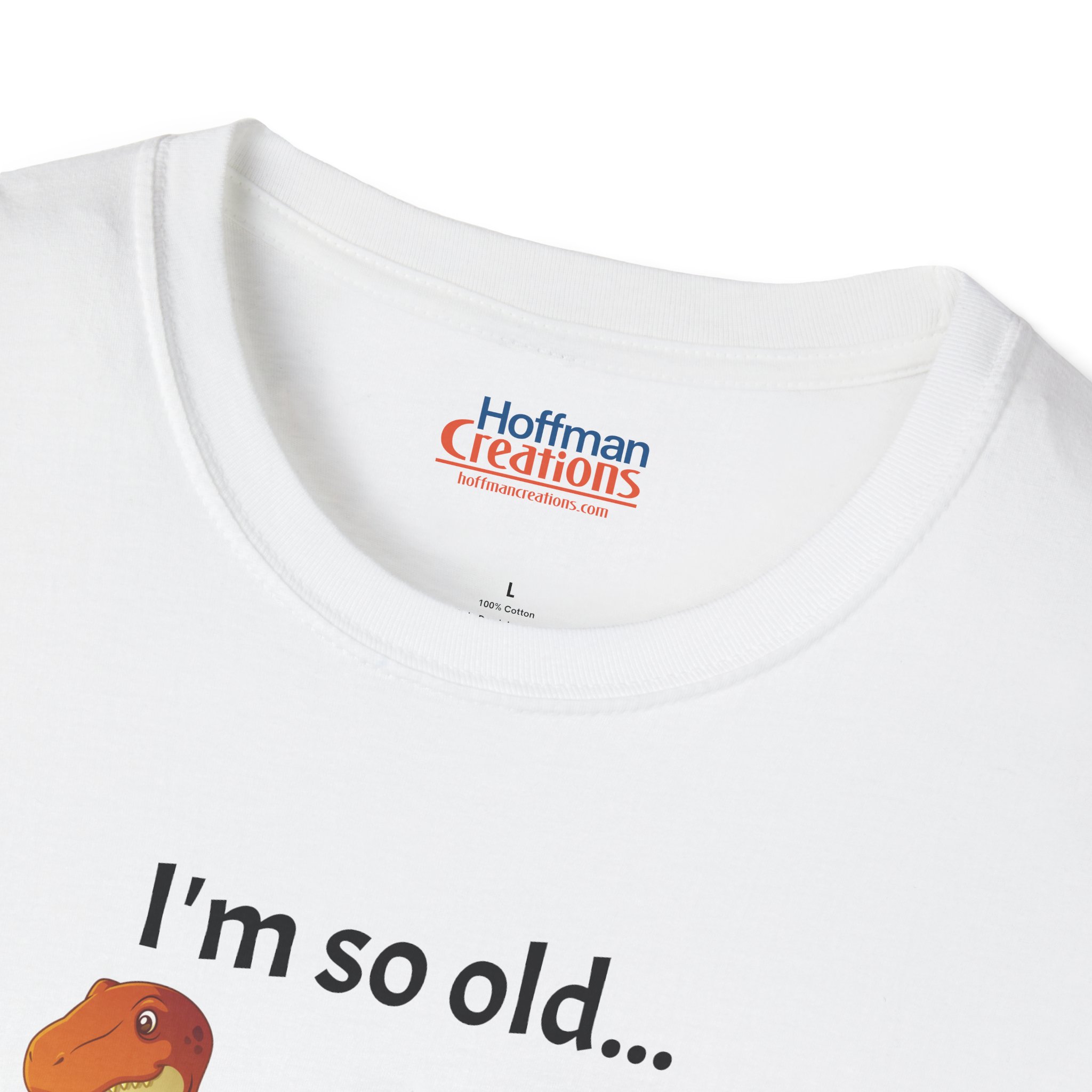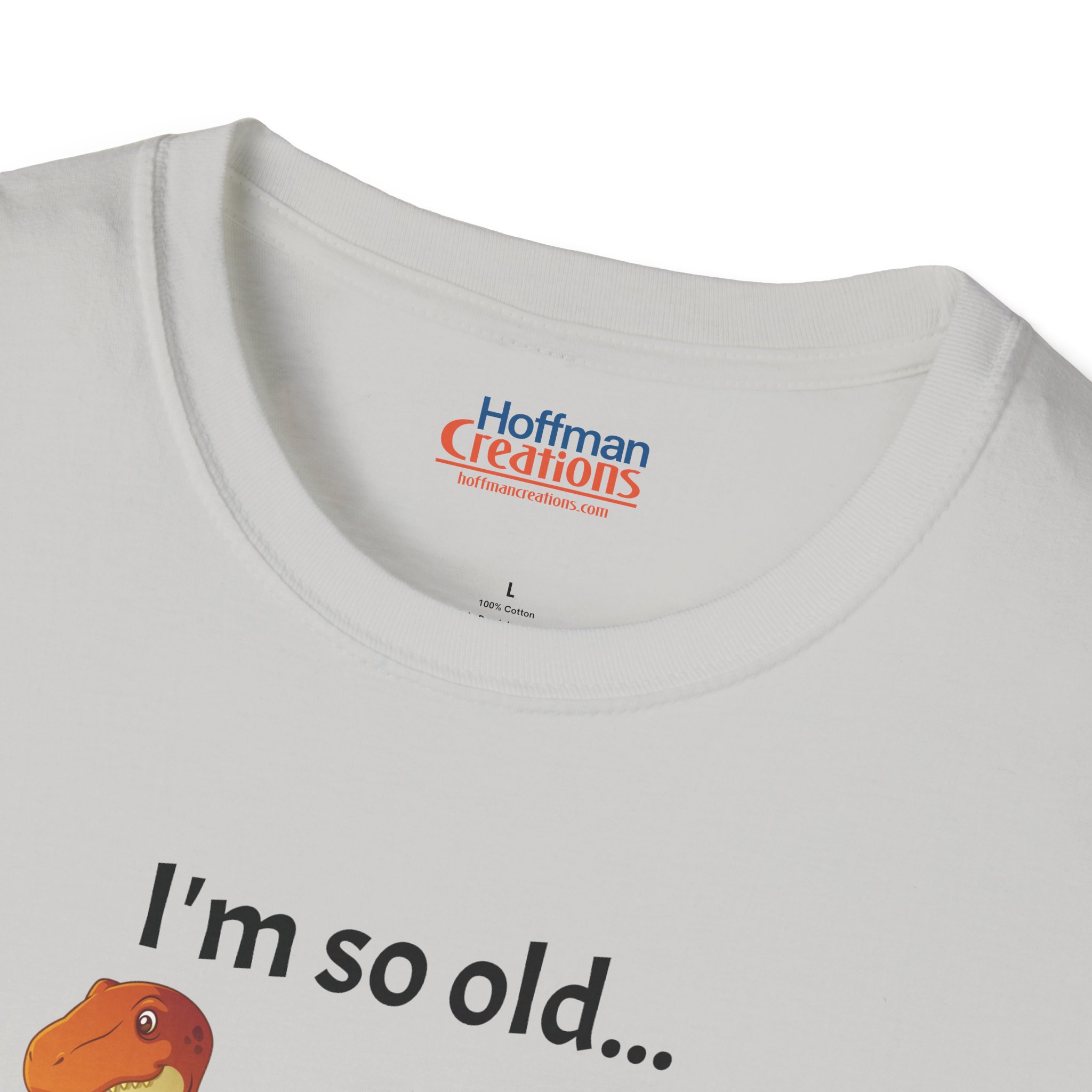 Check out this great sarcastic, humorous gag graphic T-shirt featuring the text "I'm so old... my pet "Rex" was a T-" accompanying a cartoon T-rex dinosaur. Made with 100% ring-spun… [View full description/specs]
